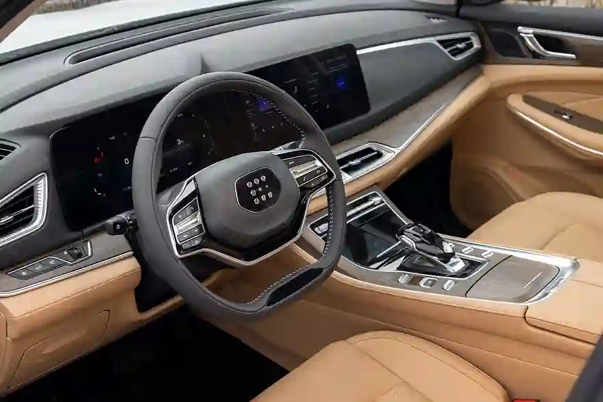 Ну а что внутри? Архитектура салона тоже не претендует на особую оригинальность, но все сделано очень добротно. Качественные мягкие материалы, приятная и на вид, и на ощупь бежевая кожа (даже и не скажешь сходу, натуральная она или нет), правдоподобные вставки «под дерево». Огромная панорамная крыша с люком площадью 1,14 кв.м делает салон еще более светлым и воздушным. А вот приспособленность к российским зимам можно назвать недостаточной: обогрев передних сидений есть, устойчивость ходовой батареи к холодам, если верить обещаниям производителя, тоже обеспечена на приличном уровне, но обогрева руля и ветрового стекла – нет.