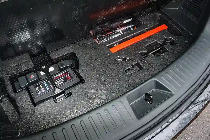 Но есть и момент, который вызывает беспокойство. Если поднять коврик, закрывающий заднюю часть пола в багажном отсеке, то под ним обнаруживается стартовый 12-вольтовый аккумулятор емкостью 43 Ач, вкручивающаяся буксирная проушина… и полное отсутствие запасного колеса, даже в виде «докатки». Вместо этого там есть баллон со специальным аэрозольным герметиком, который заполняет колесо, распределяется по его внутренней поверхности и заклеивает прокол. Охотно верю, что если вы поймаете гвоздь, то такая система с этой проблемой справится и вы успешно доберетесь до шиномонтажа, где шину отремонтируют капитально и профессионально. А если боковой порез? С ним герметик вряд ли справится, а ведь на наших дорогах нередко встречаются выбоины с острыми краями, особенно по весне, когда «асфальт начинает сходить вместе со снегом».