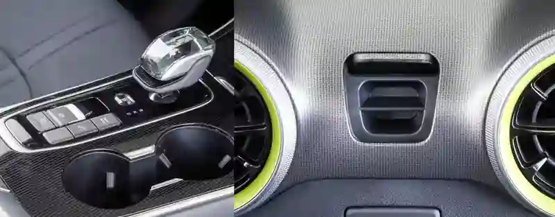 Из необычного – «хрустальный» набалдашник джойстика трансмиссии и микроскопический тайничок с крышкой между центральными дефлекторами, в который даже коробок спичек не влезет.