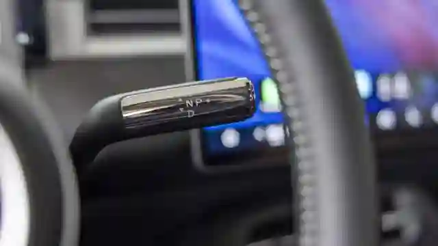 Селектор режимов движения переехал на правый подрулевой рычажок, на левый — всё остальное. Причем поворотники нефиксируемые, что для многих окажется неудобно. Фары включаются через меню центрального дисплея, что несколько непривычно. Хорошо, что сохранили традиционное переключение с ближнего на дальний свет левым рычажком.